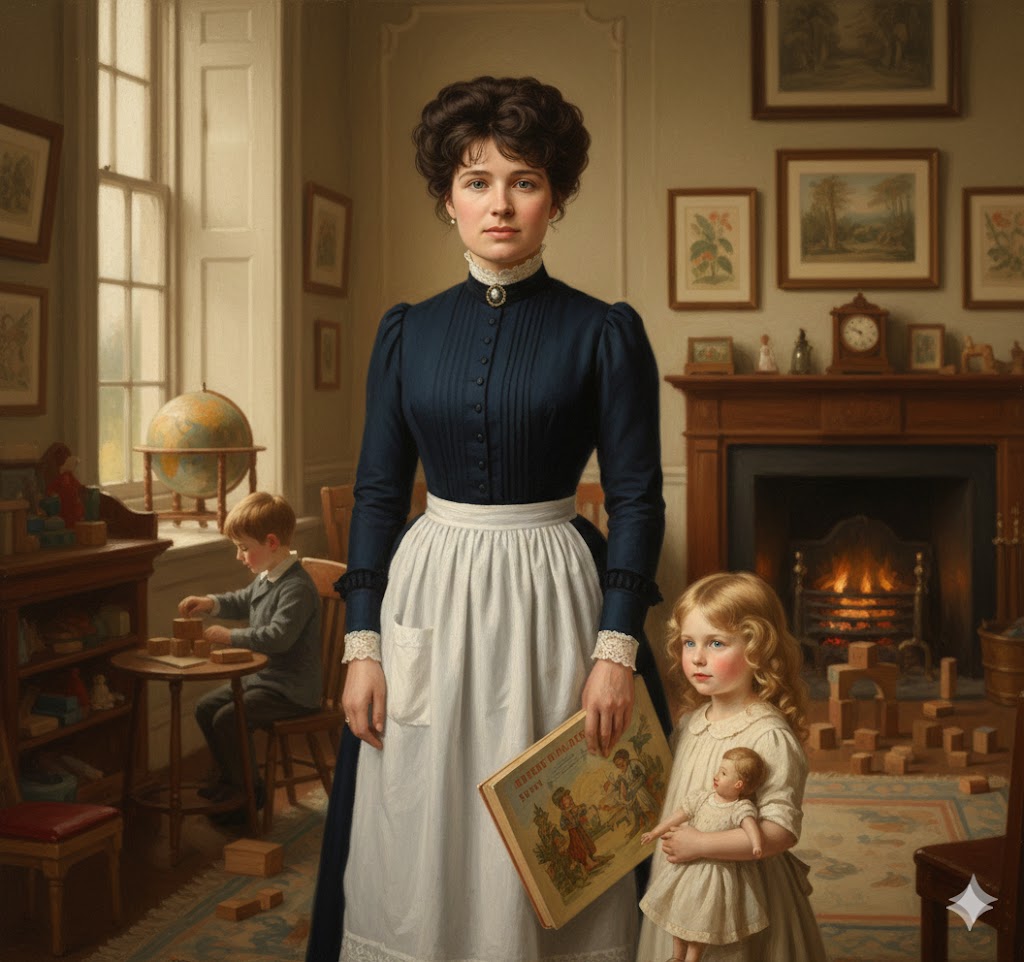 Annie Butler had come to New York, USA, in the Gilded Age of 1895. By 1910, she had worked as an English Anglican Victorian Governess, Nurse (Nanny), and Lady’s Maid of Honor to several British nobles and American wealthy families. It is possible she worked for Ava Willing Astor and the other leading families in New York and Philadelphia.